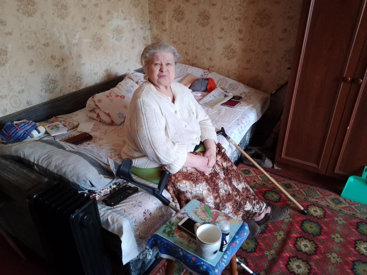 Albina says that in the bomb shelter it was much worse, because people walked along her poor diabetic legs.